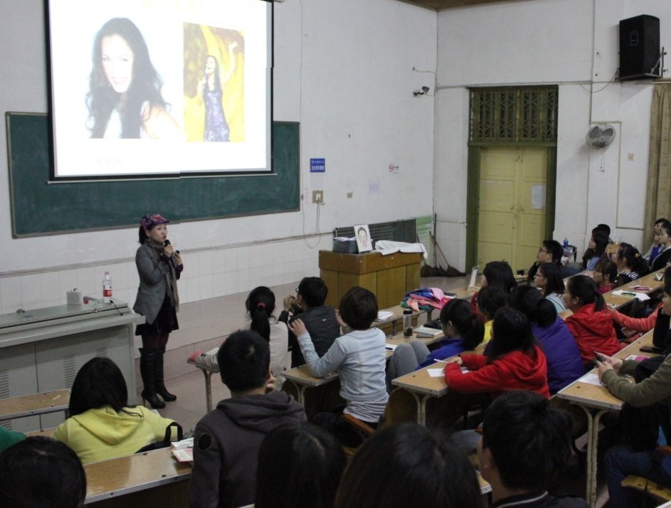 2012年4月12日晚上7点,校傲江湖网启动以“梦想与美丽”为主题的高校巡回演讲活动在BWIN必赢电教105举行特邀高级色彩搭配师、校傲江湖网首席形象礼仪讲师王晶老师主讲,与全体大三同学共同分享如何拥有完美的职场礼仪,从容展示自己。