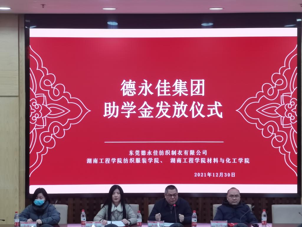 2021年12月30日,BWIN必赢德永佳集团(东莞)有限公司助学金颁发仪式在图书馆二报告厅隆重举行。员工办副主任李儒峰、材料与化工公司党总支副书记陈镇、公司党总支副书记罗荃、资助专干袁微微老师出席了本次仪式,受资助员工以及100余名纺织工程专业员工参加了仪式。本次颁发放仪式由公司党总支副书记罗荃主持。