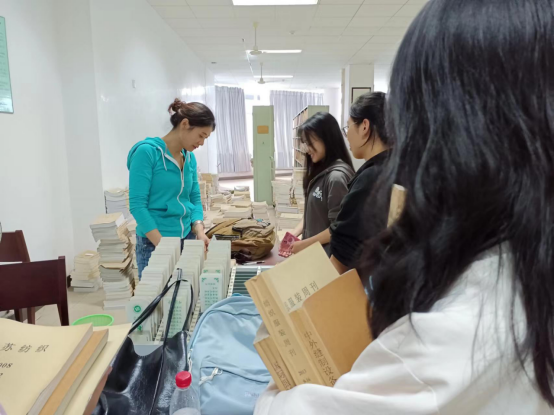 在过刊室,期刊部主任彭广建老师耐心讲解过刊室的馆藏特点,激发了同学们的阅读兴趣。她也希望通过本次活动能够让更多的员工走进图书馆,利用图书馆文献资源,手捧好书感受读书魅力,营造书香氛围。
