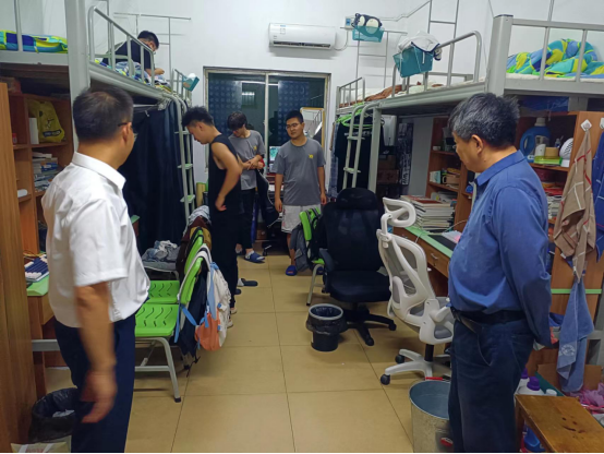 9月5日晚,为了解员工返校情况,公司党总支书记李爱国深入员工宿舍了解情况,党总支副书记杨文奎陪同参加。