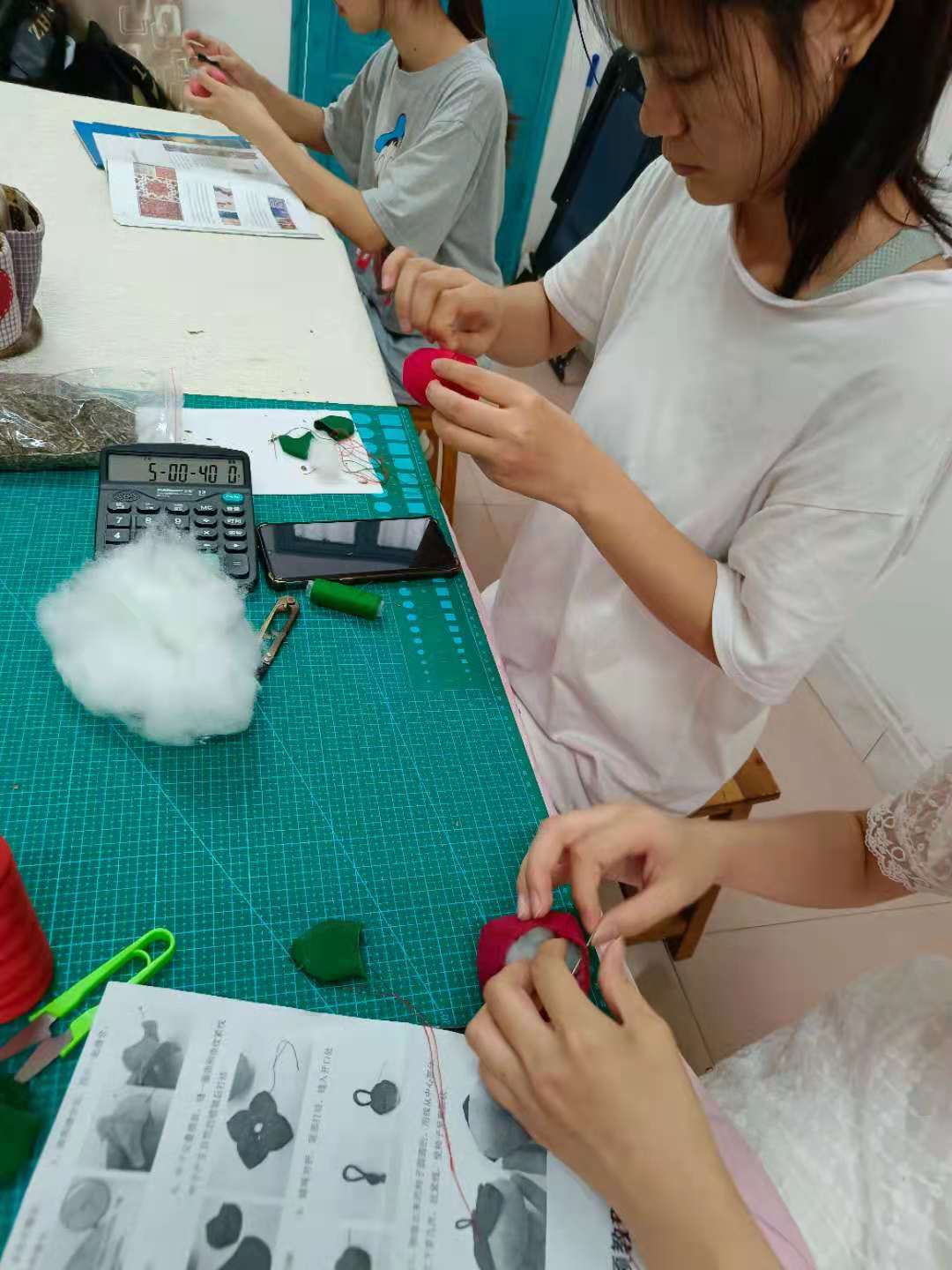 制作环节气氛也十分活跃,老师和同学们一边缝制香包一边探讨“柿子”的吉祥寓意,在锻炼动手能力的同时温习了传统文化,感受如意情怀。在手工活动短短2个小时的时间里,老师和同学们在杨梅老师手把手教学下都各自缝制了属于自己的专属“柿子香包”。