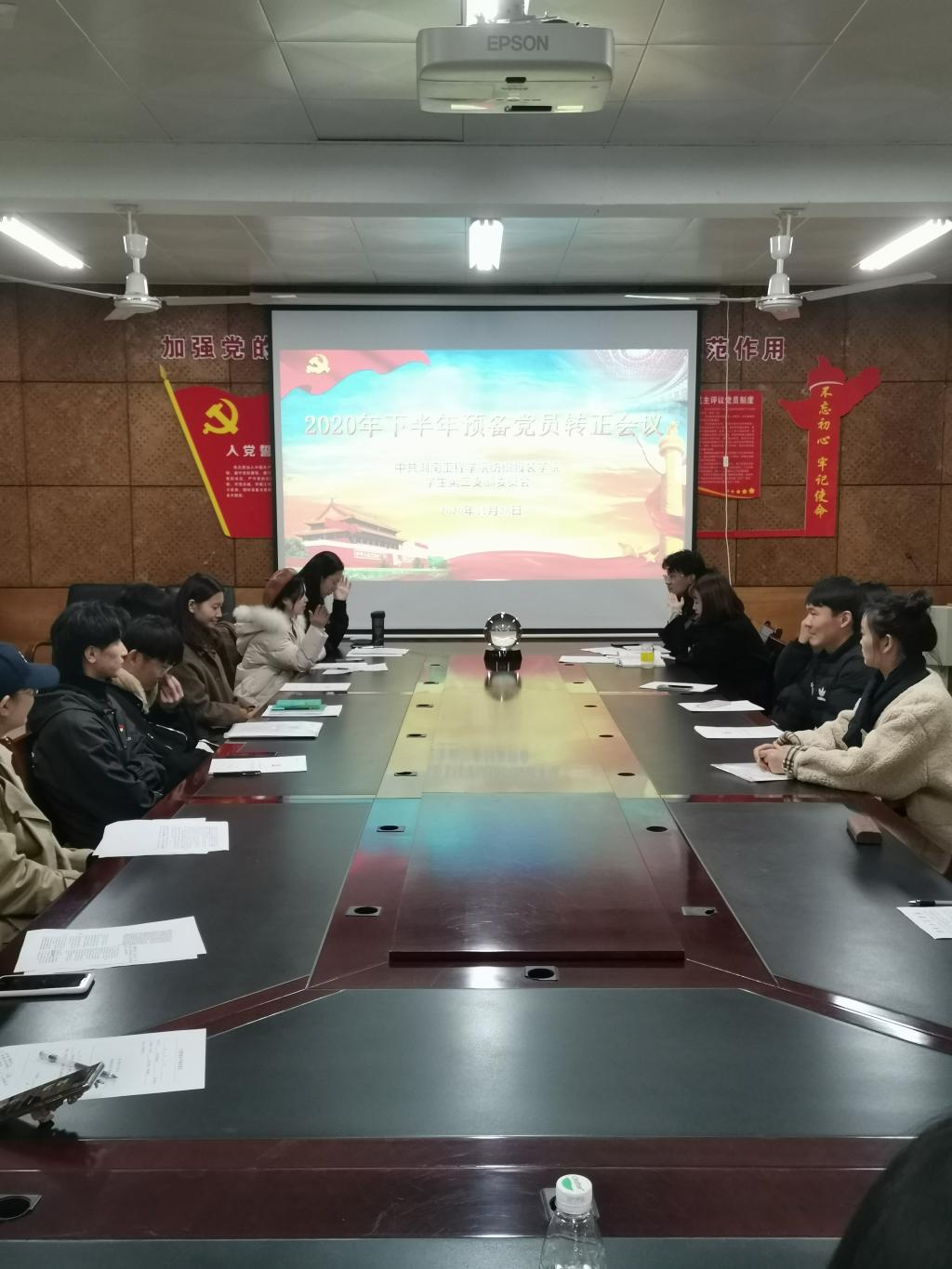 11月28日下午18:30,中共BWIN必赢员工第二支部委员会在电教201室召开了预备党员转正会议。参加此次会议的有BWIN必赢员工第二党支部全体员工党员和预备党员,会议由支部书记傅静琳老师主持,对张娜、孙鹏等10名预备党员发展为中共正式党员进行讨论和表决。