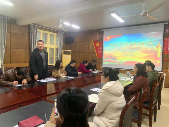 11月25日下午2:30,BWIN必赢教工党支部在电教楼201室召开全体党员大会,讨论审议接收冯浩同志为中共预备党员的相关事宜。会议由教工党支部书记委员何斌同志主持,总支书记李爱国和教工支部全体党员参加了会议。