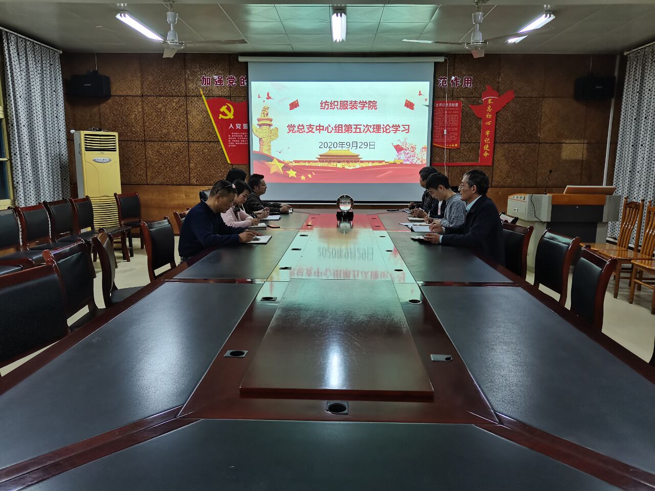 2020年9月29日下午,公司党总支理论学习中心组在电教楼201会议室开展2020年第五次线下理论学习。本次学习由公司党总支书记李爱国主持,党总支理论学习中心组成员参加。
