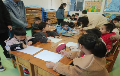 下午3点,在幼稚园园长的带领下,党员们来到了小朋友们的教室,迎面而来的便是小朋友纯真的笑脸和热情的欢迎声。首先,党员们带领小朋友学习歌曲并合唱《我和我的祖国》,虽然小朋友还是牙牙学语,却也是全程热情在线,跟着员工党员认真学唱,用他们幼稚的童声表达着对祖国的爱。学唱以后,党员同学向小朋友讲述《鸡毛信的故事》,“海娃几岁了啊?”“鸡毛信到底长什么样子啊?”,故事激发了小朋友的无限好奇和兴趣,踊跃提问与“海娃”相关问题。“小朋友们,你们眼中的海娃是什么样子的呢?我们一起把他画下来吧”。在党员同学的辅导下,小朋友纷纷拿出纸笔画出他们心目中的海娃形象图。活动最后,员工党员带领小朋友一起以国旗为主题制作了精美贺卡。