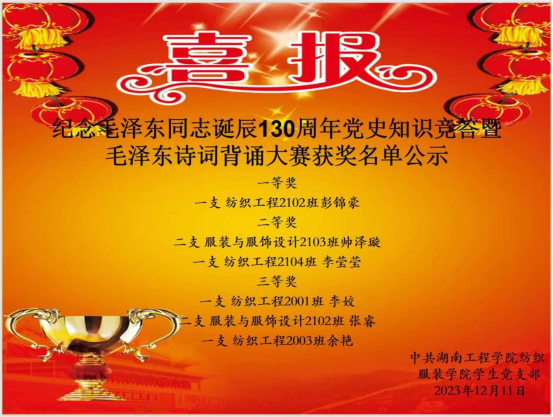 经过激烈的角逐,彭锦豪获得一等奖,帅泽璇、李莹莹获得二等奖,李姣、张睿、余艳分获三等奖。彭锦豪兴奋地说道:“通过本次活动,不仅加深了我对党史的认识,还强化了自己守初心、担使命的责任意识,在今后的学习中,我将加倍努力付诸行动。”