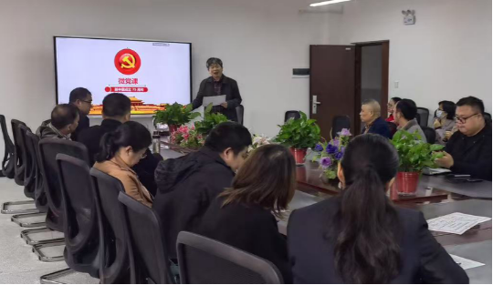 活动第二项内容——公司党委书记李爱国立足湖湘地域红色文化历史以及新中国成立75周年以来的辉煌成就,为全体教工党员讲述了一堂生动的“微党课”。
