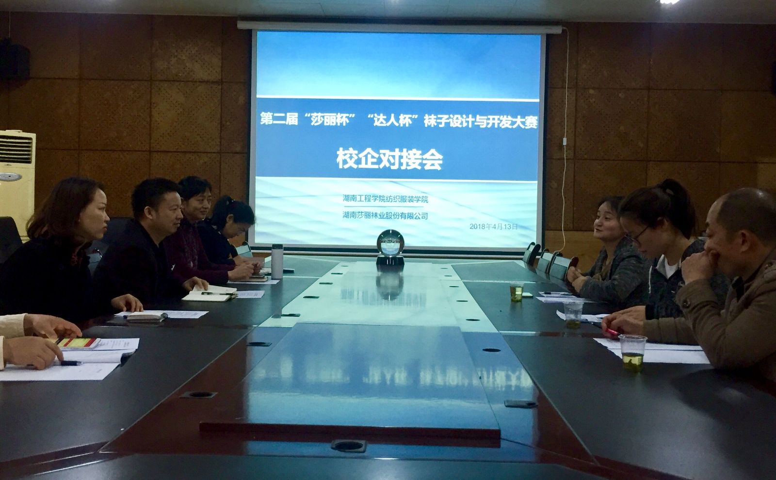 2018年4月13日上午,湖南莎丽袜业办公室主任汤静、设计部欧清松、钟虹等来到BWIN必赢就第二届“莎丽杯”“达人杯”袜子设计与开发大赛相关事宜进行交流和对接。公司党总支副书记黄自力、副经理周衡书、服装教研室主任左双喜等热情接待,并在电教楼二楼会议室召开校企合作对接座谈会,会议由周衡书主持。湖南莎丽办公室主任结合企业自身需求,就本次合作方案和要求做了相关介绍:本届大赛主要以“民族服配民族袜”、“运动服配运动袜”、“一袜一故事”为主线,深度挖掘民族文化,在满足袜品制造生态、舒适健康的基础上,实现民族服配民族袜,民族袜传播中华民族故事的终极目标;对使用纱线上也提出了相应的要求,更贴合企业需求和市场。