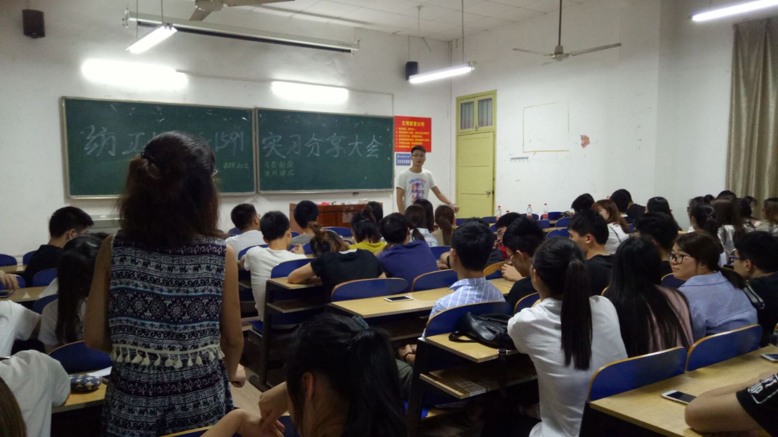 为更好帮助卓越班员工了解纺织企业,分享企业学习、实习经验,传递一届届卓越班员工的同学之爱, 2017年5月18日晚,企业实习一学年回校的纺织工程1391班毕业生代表与纺工1491班、1591班员工共聚红楼208教室,举行分享与传递的经验交流大会。BWIN必赢“学习指导”辅导员名师工作室负责老师唐星星组织了本次交流会。