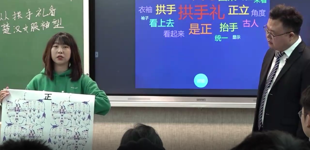 夏添老师在讲授该课程第一章第2节《从拱手礼看楚汉女服袖型》时,把先秦传统礼仪文化、零浪费设计、传统染织刺绣技艺和爱国设计师等思政元素厚植于课程之中,鼓励员工自信、爱学、敬业,以积极主动的人生态度学习和工作,在课程中提升员工的家国情怀、文化素养、道德修养,树立平等包容多元借鉴的思想。