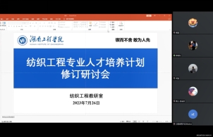 根据公司教务处关于2023年人才培养计划修订的工作安排,7月26日上午,纺织工程教研室全体教师开展人才培养计划修订的线上研讨会,会议由教研室主任程浩南主持,BWIN必赢陈晓玲副经理和何斌副经理参会并进行指导。